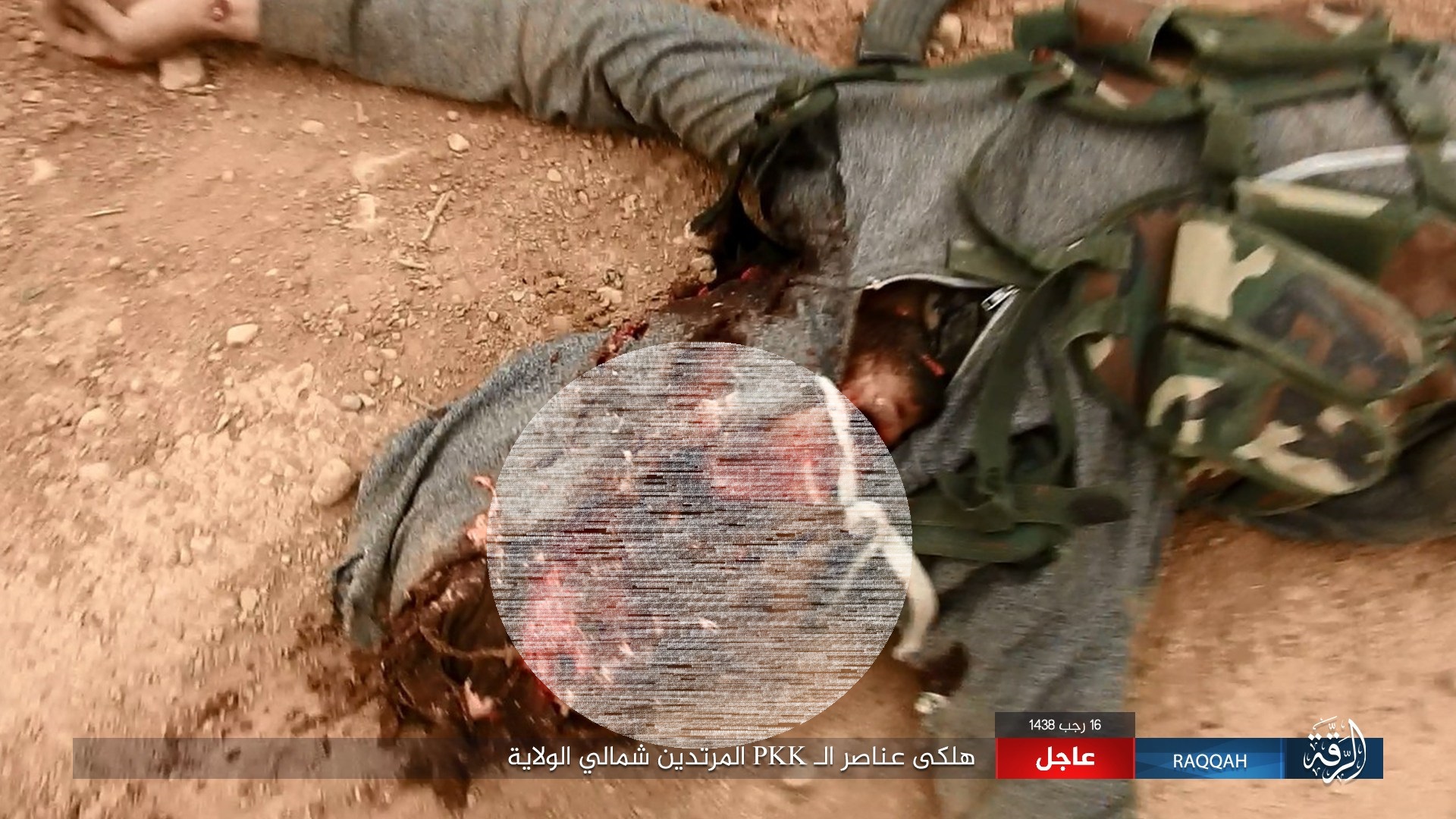 Сообщается, что после опубликованных фото смертник ИГИЛ совершил самоподрыв и убил по меньшей мере еще 12 курдских бойцов в западной части провинции Ракка.