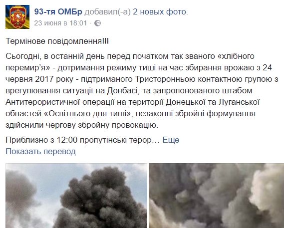 93-я бригада ВСУ обнародовала чужое фото в качестве доказательств обстрелов со стороны ЛНР, затем его подхватили киевские СМИ.