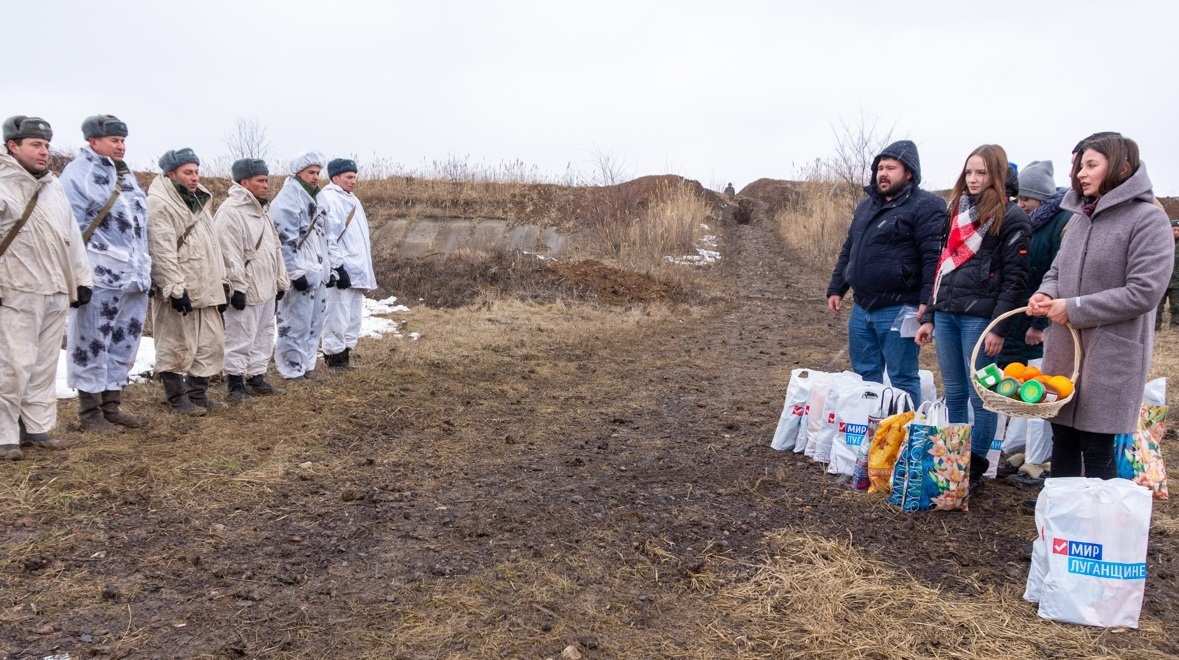 В канун Дня защитника Отечества активисты ОД «Мир Луганщине» посетили передовые позиции, поздравили военнослужащих Народной милиции ЛНР с праздником и вручили им памятные подарки. Всего подарки получили 150 военнослужащих в Стаханове, Кировске, Брянке, Славяносербске, Первомайске и Луганск.