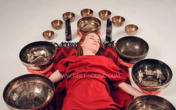 - массаж – речь идёт не о классической технике, а о воздействии на тело колебаний, которые исходят от чаш, лежащих возле тела или на нём. Они позволяют зарядиться энергией.