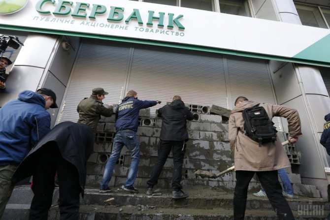 Правоохранительные органы никак не реагировали на эти действия, а позже Петр Порошенко подписал указ о введении в действие санкций в отношении пяти банков с российским капиталом (Сбербанк, Проминвестбанк, ВТБ, БМ Банк и VS Bank).