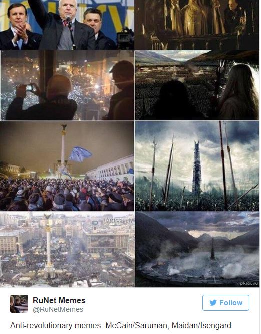 This is not the case for the Russian cartoons. The only movie comparison which could be found so far is the one between US Republican John McCain and the evil wizard Saruman from "Lord of the Rings."