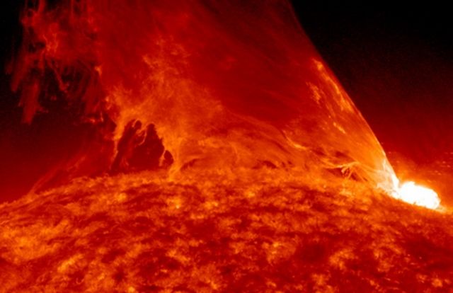 Солнечные вспышки часто сопровождаются корональными выбросами массы. Данные процессы могут быть весьма опасны для нашей планеты, в случае, если она окажется на пути такого выброса. Более того, чем больше нашей техники находится в околоземном пространстве, тем сильнее нас могут потрепать такие события.