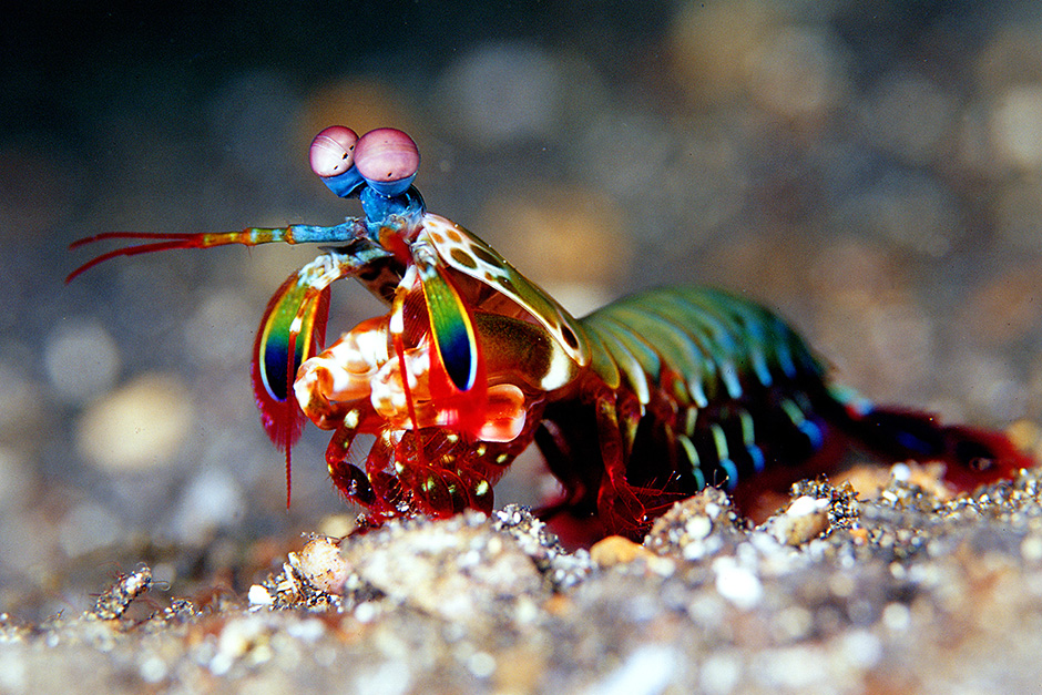 Рак-богомол с причудливой внешностью является опаснейшим хищником. Его клешни способны легко раскалывать прочные раковины моллюсков и даже аквариумное стекло без ущерба для себя. Однако эти ротоногие обладают не только крепким панцирем, но и могут похвастать едва ли не самым мощным ударом среди всех живых существ на планете.
