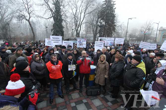 Die Vertretern der so genannten "Kredit Maidan" kamen auch dem Parlament an, diese verlangen, dass die Abgeordneten die Bedingungen der Kreditvergabe und Einzahlungen ändern, gegen "Banksklaverei".
