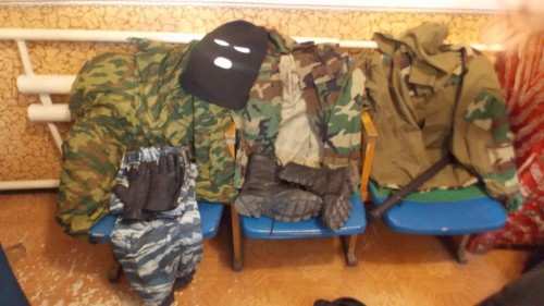 солдатский ремень, резиновая дубинка, аптечка, бинокль, российский флаг, нож, газовый балончик, наклейки с символикой, георгиевская лента, противогаз (респиратор), спальник, туристичекий коврик, плащ-палатку, армейские ботинки, маска, компас, карта, фотографии с мест службы, армейский набор для принятия пищи, шокер, портупея, рация, бинты, «военный билет командира отделения подразделения специального назначения воздушно-десантных войск» и подобные вещи.