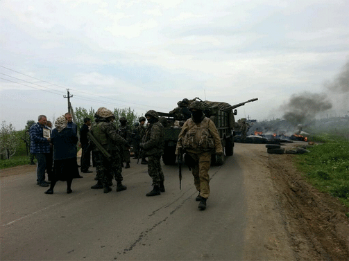 6:46 (Киев) Первые потери со стороны защитников Славянска. Центр Краматорска перегораживают автобусами и грузовиками, строятся баррикады.