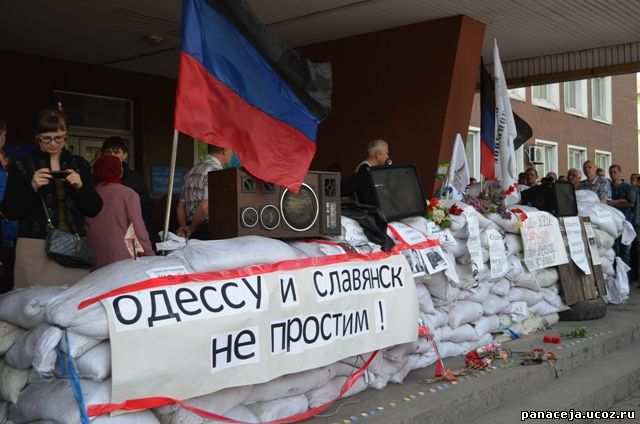 Сегодня, 4 мая, перед исполкомом в городе Енакиево Донецкой области (население 85 000 человек) собрались шахтеры. Учитывая последние события в стране — гибель людей в Славянске, Краматорске, Одессе — наши земляки приняли решение выйти на митинг, чтобы защитить свою малую родину от агрессоров.
