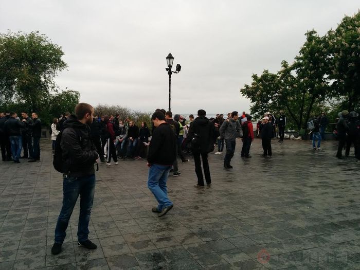 Собравшись на Александровском проспекте, вороружённые нацисты внезапно ушли на Дерибасовскую, зашли во двор дома № 18, после чего спустя некоторое время вышли оттуда и направились по улице Екатерининской в сторону Екатерининской площади. Они дошли до памятника Дюку, где к ним присоедились ещё около 15 членов самообороны «Евромайдана». Пока что все остаются на Приморском бульваре, люди продолжают подходить.