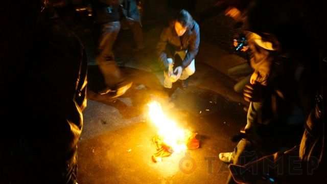 По городу прошел торжественный нацистский марш оккупантов. Часть экстремистов пришла на Куликово поле, топтать лампадки, горящие по погибщим в Доме Профсоюзов и жечь совесткие флаги, часть ринулась разыскивать активистов Одесской Дружины.