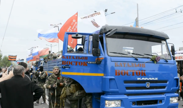 Под марш «Прощание славянки» и под аплодисменты жителей Донецка бойцы батальона «Восток» выехали на помощь Мариуполю, в котором уже несколько дней зверствуют боевики-националисты и украинские военные.