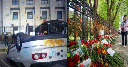 Атака переросла в осаду: украинские националисты забросали камнями и яйцами посольство России в Киеве (фото+прямая трансляция) | Русская весна