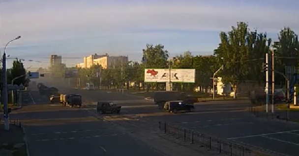 По словам людей около 5 утра они услышали гул на дороге (въезд в Луганск со стороны Краснодона). На дороге они увидели колонну техники с танками, БТРами и грузовыми автомобилями УРАЛ. По мере приближения к Луганску над колонной появился георгиевский и флаги, напоминающий флаг Крыма и андреевский стяг.