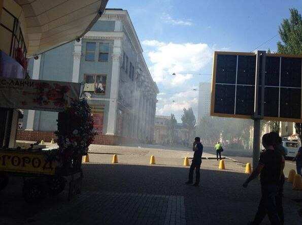Сегодня, 11 июля, в районе 17:10 (Киев), 18:10 (Мск) на втором этаже в Донецком Центральном универмаге прогремел мощный взрыв, были выбиты два окна со стороны улицы Артема и взрывной волной выбило ряд окон с других сторон здания.