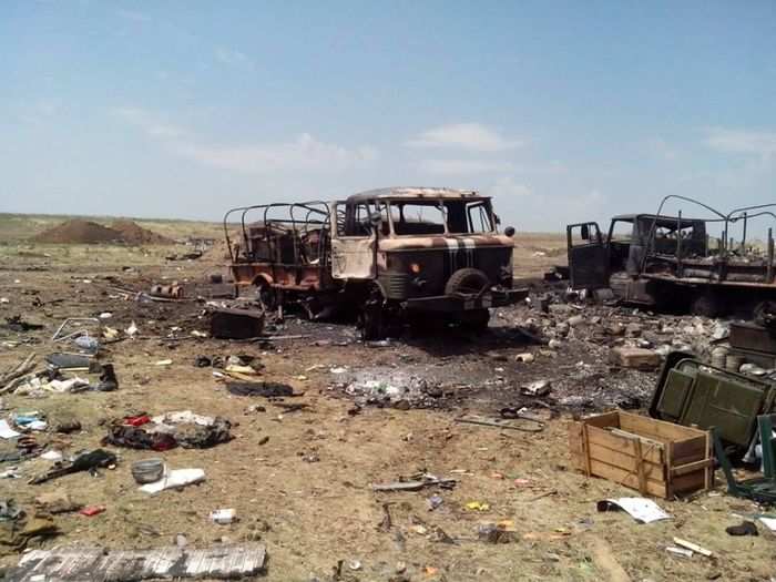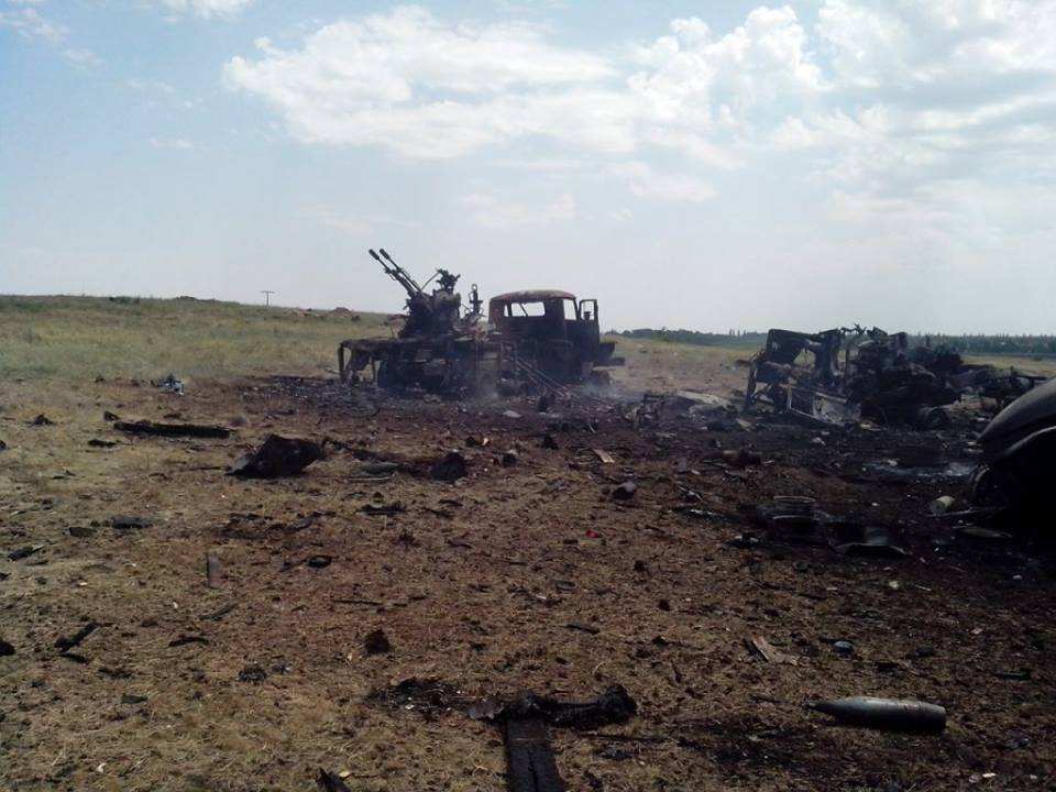В поселке Зеленополье Луганской республики 11 июля огнем «Градов» ополчения был сожжен базовый лагерь тактической группировки «КОРДОН», состоящий из пограничников, десантников из Днепропетровска и бойцов мехбригады из Яворова Львовской области.