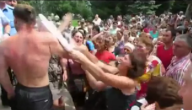 «Иди сам воюй»! — кричали разгневанные жительницы Новоселицка, после чего депутат разорвал на себе вышиванку, доказывая, что он тоже мужчина.