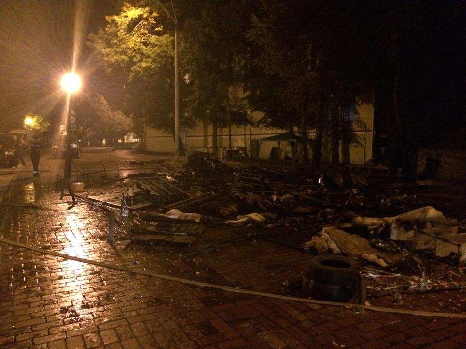«По словам очевидцев, вроде как было три человека, которые облили чем-то горючим палатки и подпалили, убежали», — написала украинская активистка Александра Дворецкая в своем Facebook.