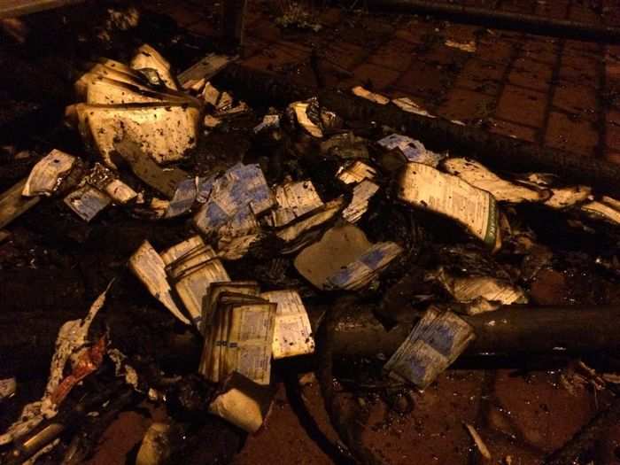 По словам очевидцев, неизвестные сожгли палатки с помощью зажигательной смеси. На Михайловской площади неизвестные сожгли палатки, оставшиеся там после Революции. Об этом сообщила на своей странице в Facebook журналистка Громадське. ТВ Наталья Гуменюк.