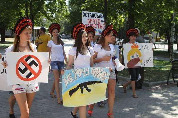 2 августа молодые харьковчанки устроили антивоенный флешмоб, 3 августа несколько десятков храбрых женщин и пожилых мужчин, по призыву Женского движения Харькова стояли за Донбасс и против войны в окружении тысячи ухмыляющихся фашистов. Тем временем сотни свидомых маршировали по улицам Чугуева к дому женщины-медика, обвиненной в избиении активиста Евромайдана.
