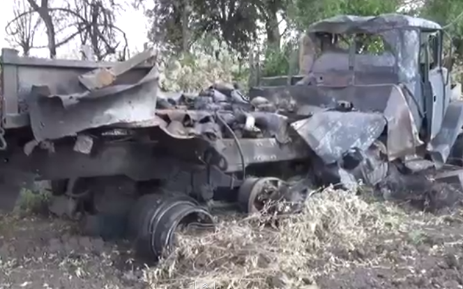 Кладбище украинской бронетехники из «Южного котла» (видео)