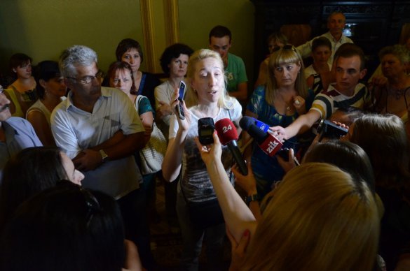 Они потребовали, чтобы к ним вышли руководители ЛОГА. Ирины Сех, как оказалось, не было на месте, как и ее первого заместителя Иосифа Сытника. Как пояснил заместитель председателя ЛОГА по гуманитарным вопросам Юрий Подлесный, Ирина Сех находится в командировке в Киеве, Сытник — на похоронах погибшего в зоне «АТО» бойца.