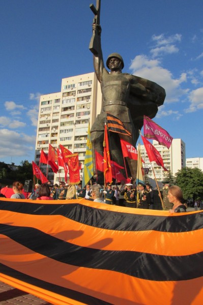 Тем не менее, харьковская милиция не препятствовала маршу примерно полутора тысяч человек к памятнику Советскому Воину с многометровой Георгиевской лентой, во главе с ветеранами. И даже выступления ораторов на тему вновь захвативших власть нацистов не были пресечены.