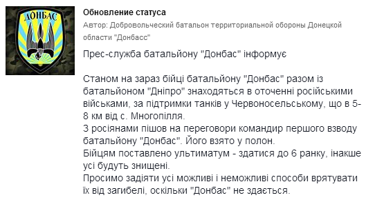 Молния: Батальон «Донбасс» на грани полного разгрома, командиры сдаются в плен 30.08.2014 - 0:08 Об этом сообщает пресс-служба батальона «Донбасс». 51