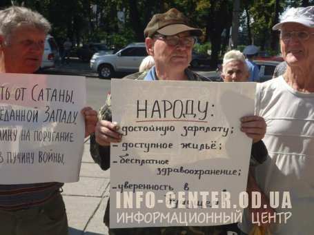 Участники акции держали в руках многочисленные плакаты против роста тарифов, уменьшения соцвыплат, беспредела олигархов и военных действий на Донбассе. Люди активно возмущались нынешней властью, в том числе и областной: досталось как киевскому правительству, так и представителям на местах. В частности активисты критиковали «правую руку» Порошенко в Одессе - Алексея Гончаренко, ранее выступавшего против приватизации Одесского припортового завода, а теперь - за.
