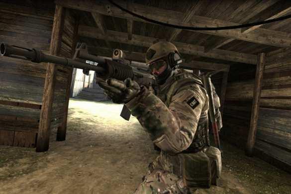 Крутые парни играют в Contr-Strike offline в развалинах терминалов аэропорта