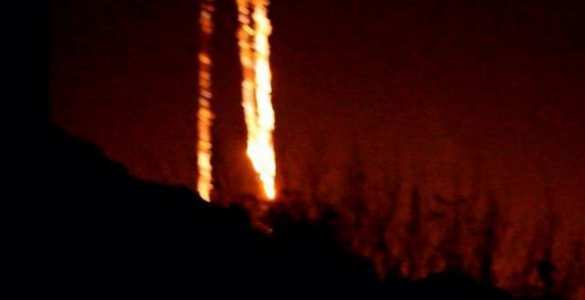 Донецкий аэропорт ночью на фото (атакован зажигательными боеприпасами).