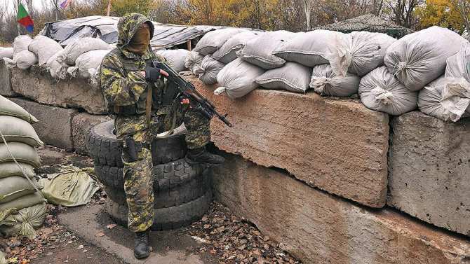 На стенке блокпоста на въезде в Горловку со стороны Донецка информационный листок сообщает, что приказом премьер-министра ДНР Александра Захарченко полковник Игорь Безлер произведен в генерал-майоры. Над блокпостом российские флаги, имперский триколор и знамя самопровозглашенной ДНР. Сам блокпост представляет собой систему бункеров, накрытых сверху двумя толстыми бетонными плитами и заваленных мешками с землей. Таких основательных сооружений я не встречал ни на одном другом блокпосту по обе линии фронта.