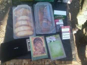 В одной коробке они обнаружили: 5 маленьких пирожков, пару носков, кусок мыла, 2 пачки сигарет, икону и 2 флажка Украины на присосках.