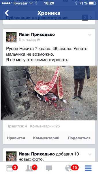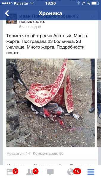 Друзья! Вот скрин моих постов по поводу сегодняшних событий в Донецке. Меня переполняет боль от того, что происходит в моем родном городе. Я не делал анализ произошедшего, только писал факты. И посмотрите скрин украинского интернет-издания.