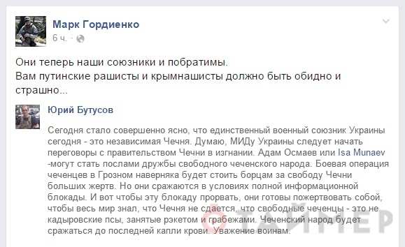 Это не помешало одному из лидеров одесского «Евромайдана», Марку Гордиенко, назвать членов террористической организации «Имарат Кавказ» союзниками и побратимами.