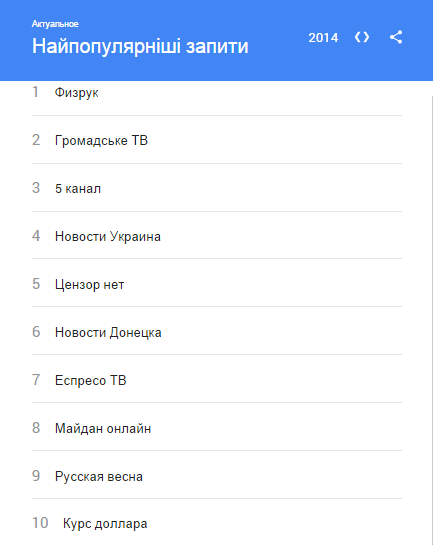 «Русская Весна» интересует украинцев больше, чем курс доллара — что украинцы искали в Google в 2014 году