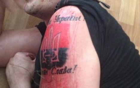 Перед сдачей в плен украинский фашист пытался кирпичом стереть татуировку «Правого сектора» (ФОТО)