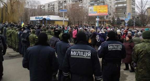 11.50 Пришло время краматорской милиции вмешаться. Став стеной, правоохранители разделили митингующих, количество которых увеличивается.