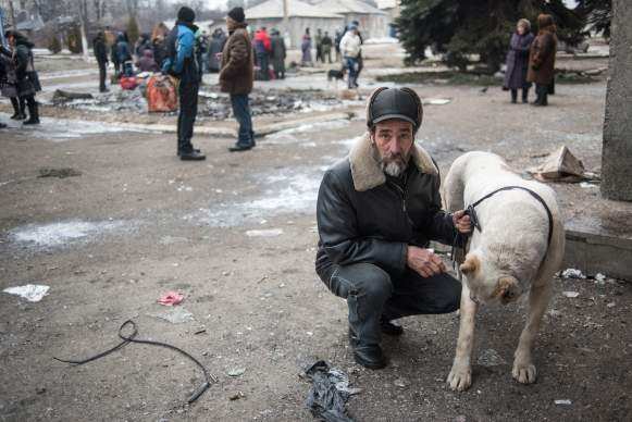 Тем временем жители полуразрушенного города Дебальцево выходят из подвалов, где укрывались неделями. Ополченцы привезли гуманитарную помощь. Это — очередной конвой из России. Среди грузов — продукты питания, в которых жители Дебальцево сейчас крайне нуждаются.