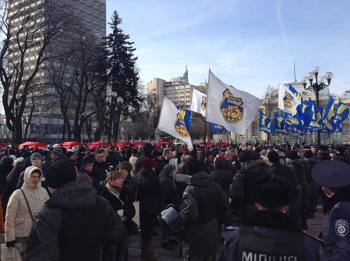 Почти вся площадь перед Радой заполнена людьми, которые пришли требовать создания парламентской ВСК, которая, по их словам, должна расследовать многомиллиардную коррупцию в правительстве.