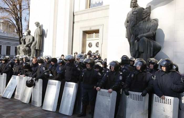 Около здания Верховной рады Украины митингуют около 2 тысяч человек. Протестующие перекрыли одну из центральных улиц Киева — Грушевского — и улицу Шелковичную, примыкающую к зданию парламента.