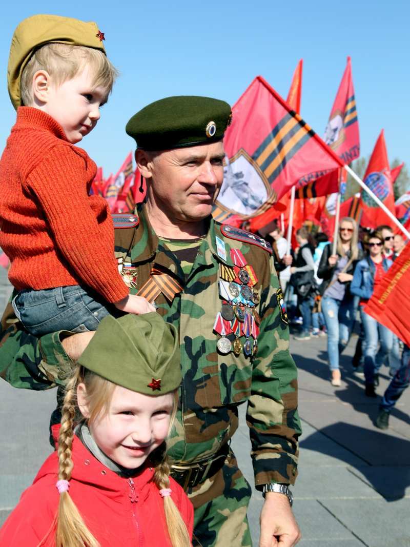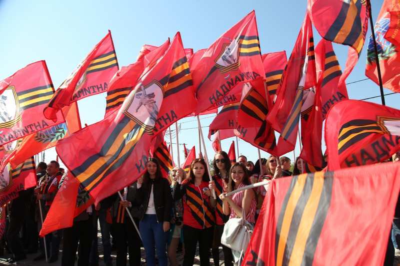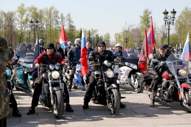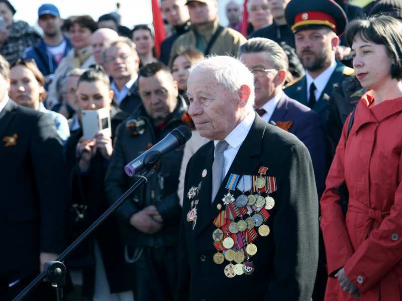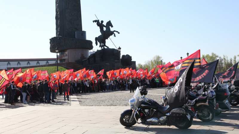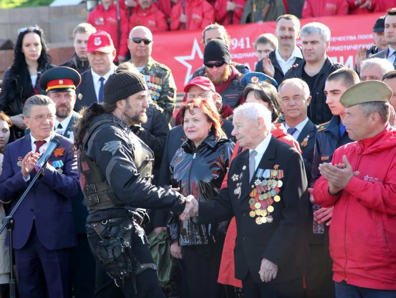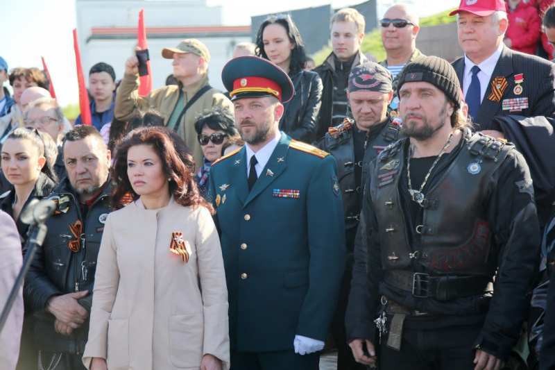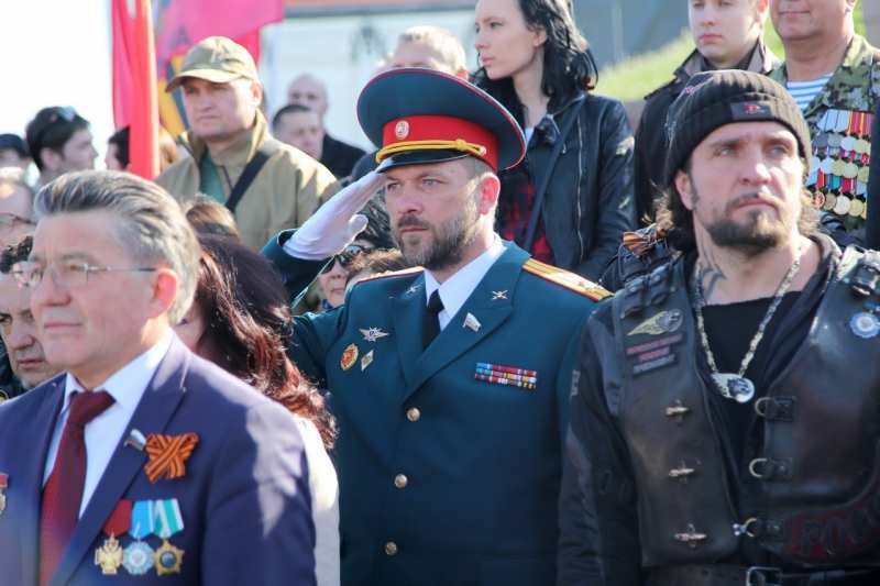 В рамках торжественной церемонии на Поклонной горе выступили, ветераны Великой Отечественной войны, представители движения «Антимайдан», мотоциклисты мото-клуба «Ночные Волки».
