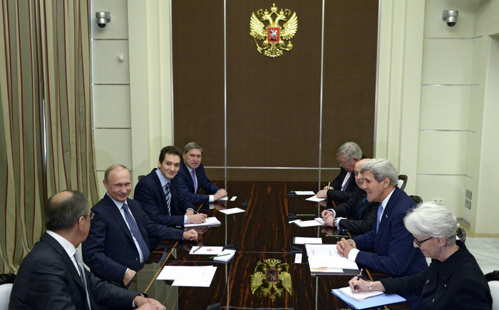 Пресс-конференции предшествовала двусторонняя беседа Лаврова с Керри, на которой они обсудили широкий круг вопросов, а также встреча российского лидера Владимира Путина с главой американской дипломатии.