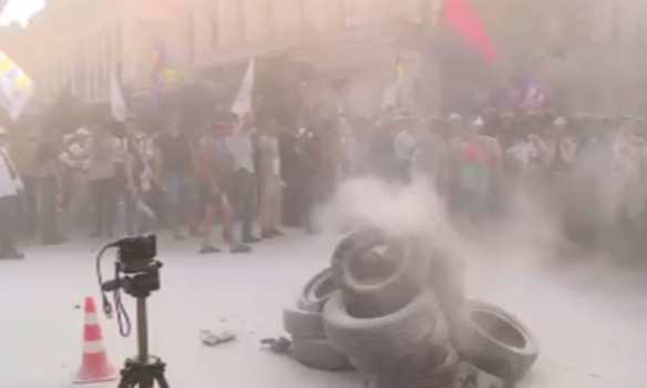 Протестующие у Верховной Рады подожгли покрышки (ФОТО)