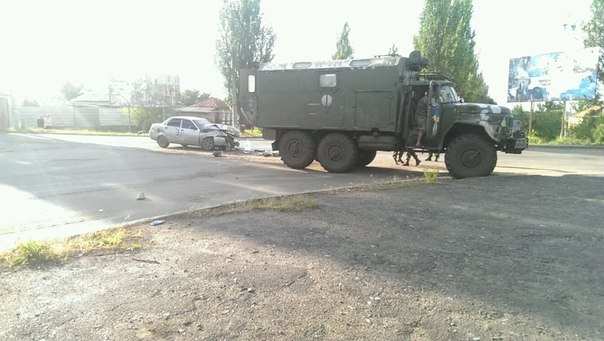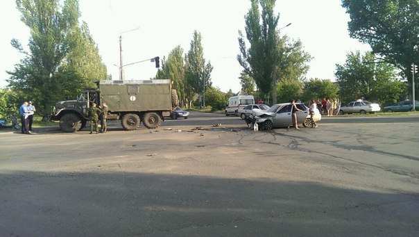 31 мая в Артемовске около 18:00 на перекрестке ул. Советской и пер. Кирпичного (поворот на объездную дорогу) произошла авария с участием ЗиЛ ВСУ врезался в гражданский автомобиль ВАЗ 2110 и
