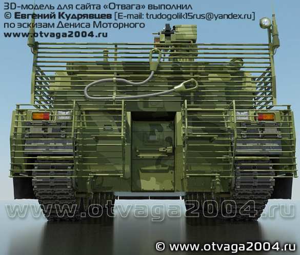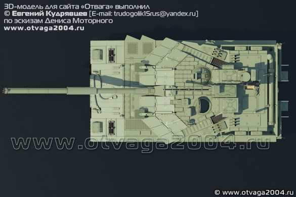 За моторно-трансмиссионным отделением будет находиться защищенный модуль экипажа. Башню танка планировалась, как на «Армате», сделать необитаемой.