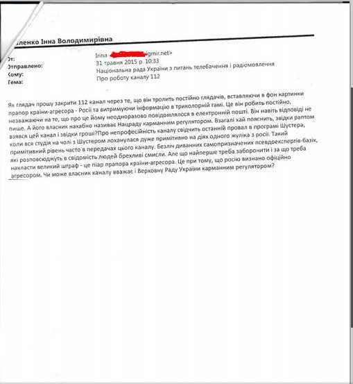 Национальный совет по вопросам телевидения и радиовещания направил телеканалу «112 Украина» письмо с неожиданной претензией — к цветам, в которых оформлен дизайн вещателя. Подписал документ лично глава Нацсовета Юрий Артеменко.