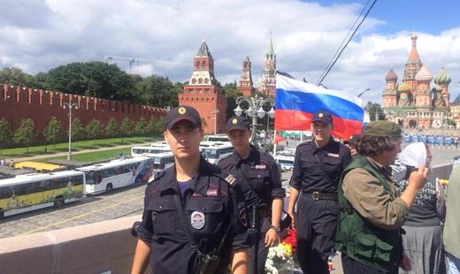 На Большом Москворецком мосту произошла стычка ветеранов Воздушно-десантных войск и либеральных активистов, которые пытались собирать подписи под петицией об установке мемориальной таблички Борису Немцову.