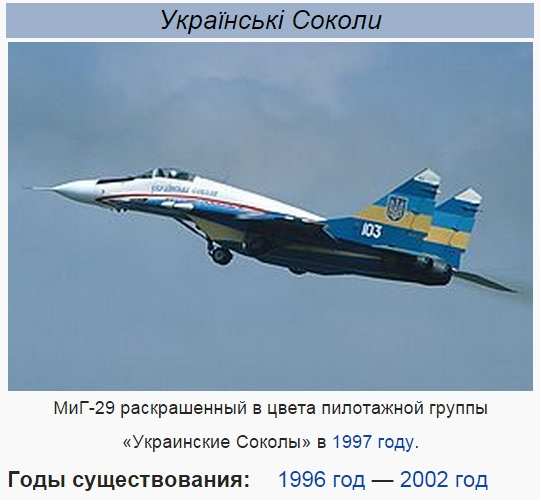 Действительно, мастера пилотажа. Только с 2002 года не существует этой группы, „Украинские соколы“. Расформировали. А самолеты стояли гробиками в Николаеве. Они никогда не будут летать. Им конец».