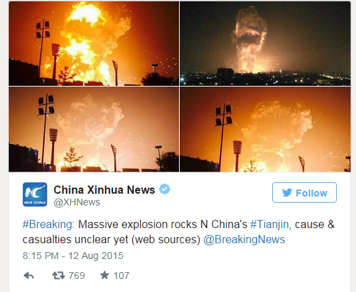 В городе Тяньцзинь в восточной части Китая прогремел мощный взрыв.
