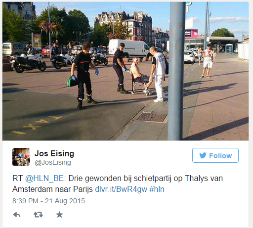 Нападавшего обезвредили сами пассажиры — двое американских военнослужащих, которые услышали звук передёрнутого затвора автомата и набросились на вооружённого мужчину.
